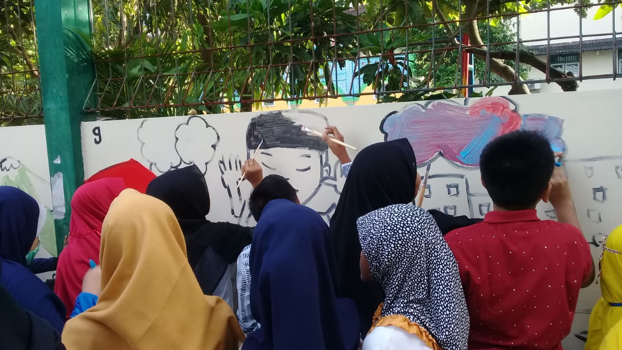 Siswa-siswi kelas III – V SD Muhammadiyah Condongcatur mengikuti lomba mural dalam rangka kegiatan porsenitas sekolah, Senin, (28/5/18) lalu.