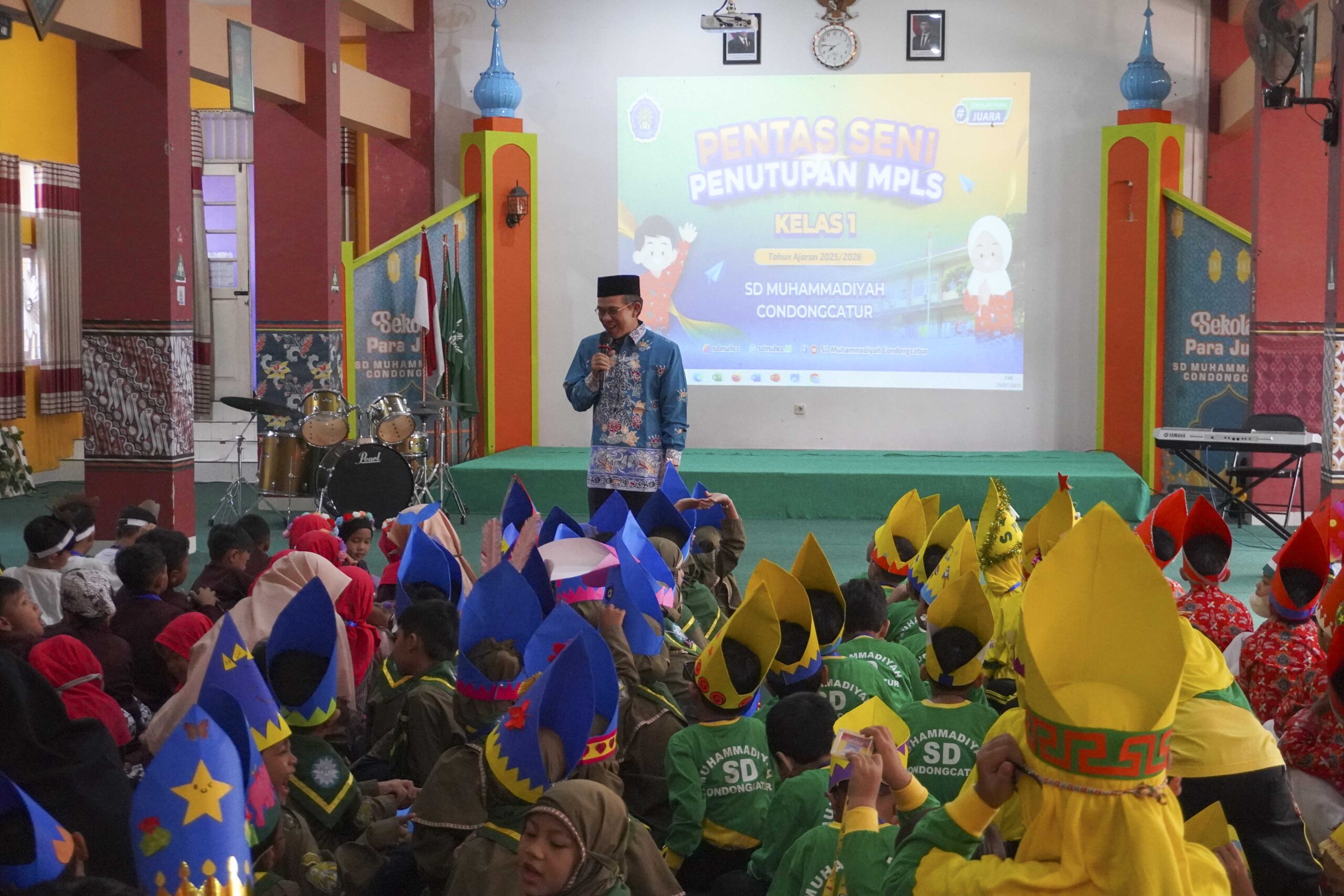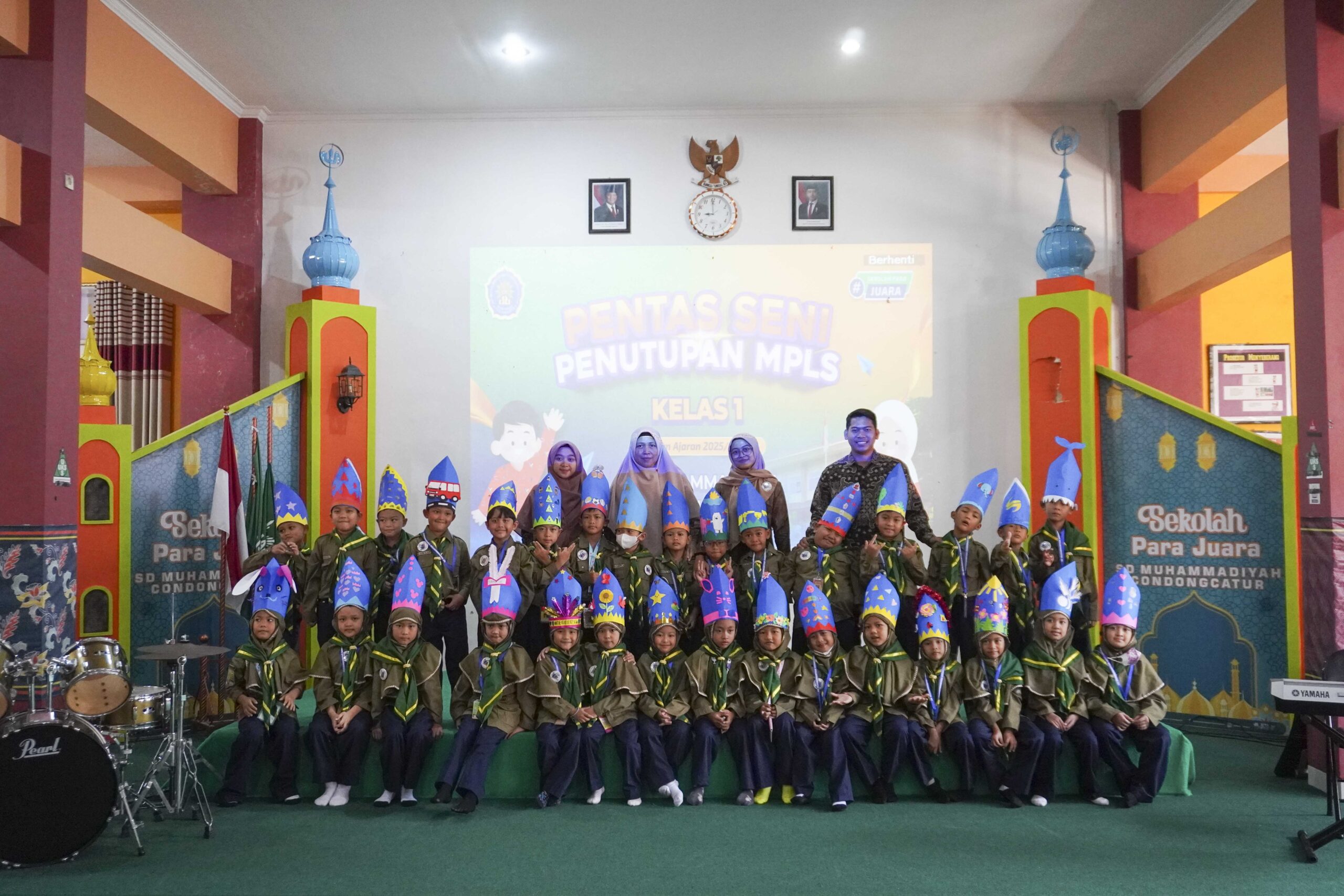Masa Pengenalan Lingkungan Sekolah (MPLS) bagi siswa kelas 1 SD Muhammadiyah Condongcatur resmi ditutup dengan semarak melalui gelaran Pentas Seni Kelas 1. Kegiatan yang berlangsung pada Jumat pagi, 1 Agustus 2025, pukul 07.00 hingga 10.30 WIB di Aula K.H. Ahmad Dahlan ini menjadi momen istimewa yang penuh antusiasme dan keceriaan.
