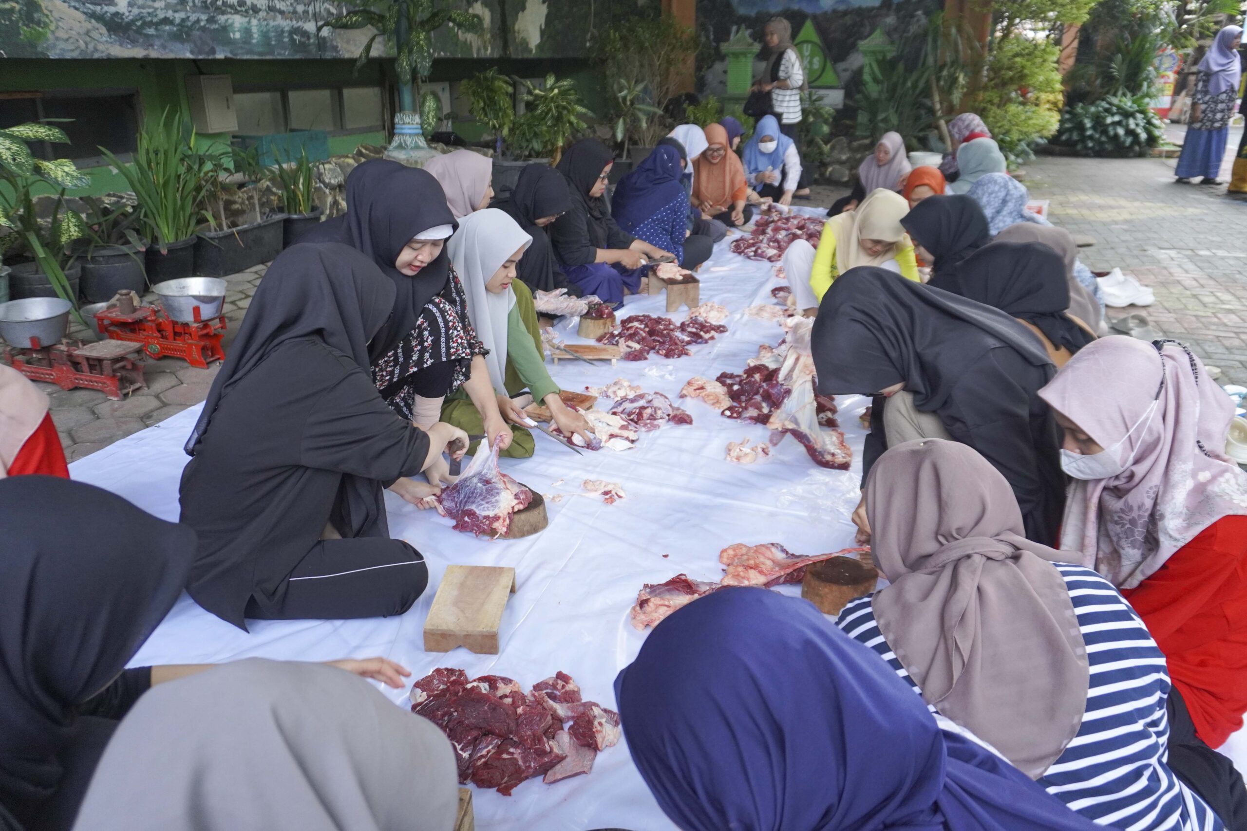 Seluruh bapak/ibu guru serta karyawan turut hadir dan berperan aktif dalam membantu proses penyembelihan, pemotongan, hingga pengepakan daging qurban. Kebersamaan dan gotong royong menjadi semangat utama dalam pelaksanaan kegiatan ini.
