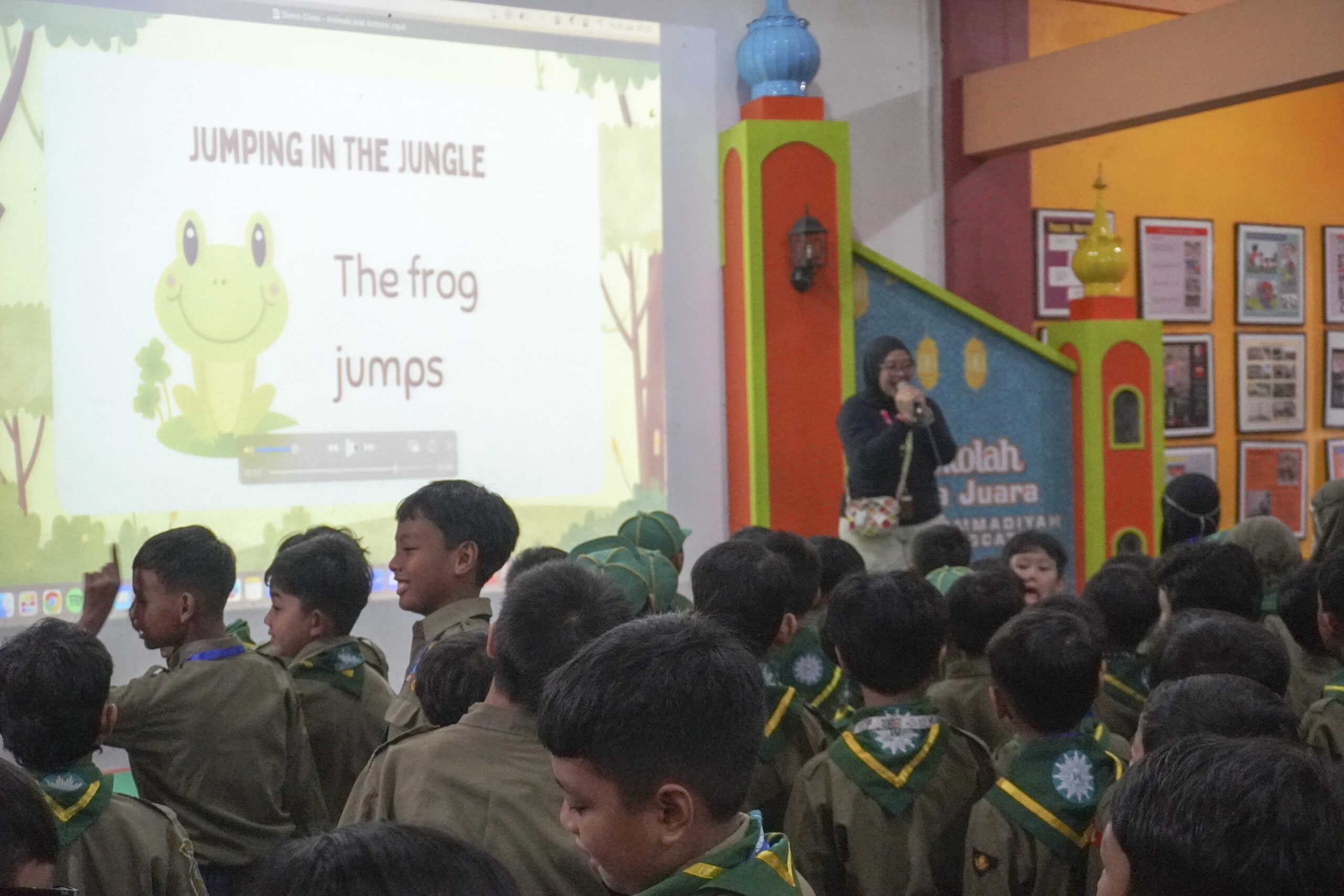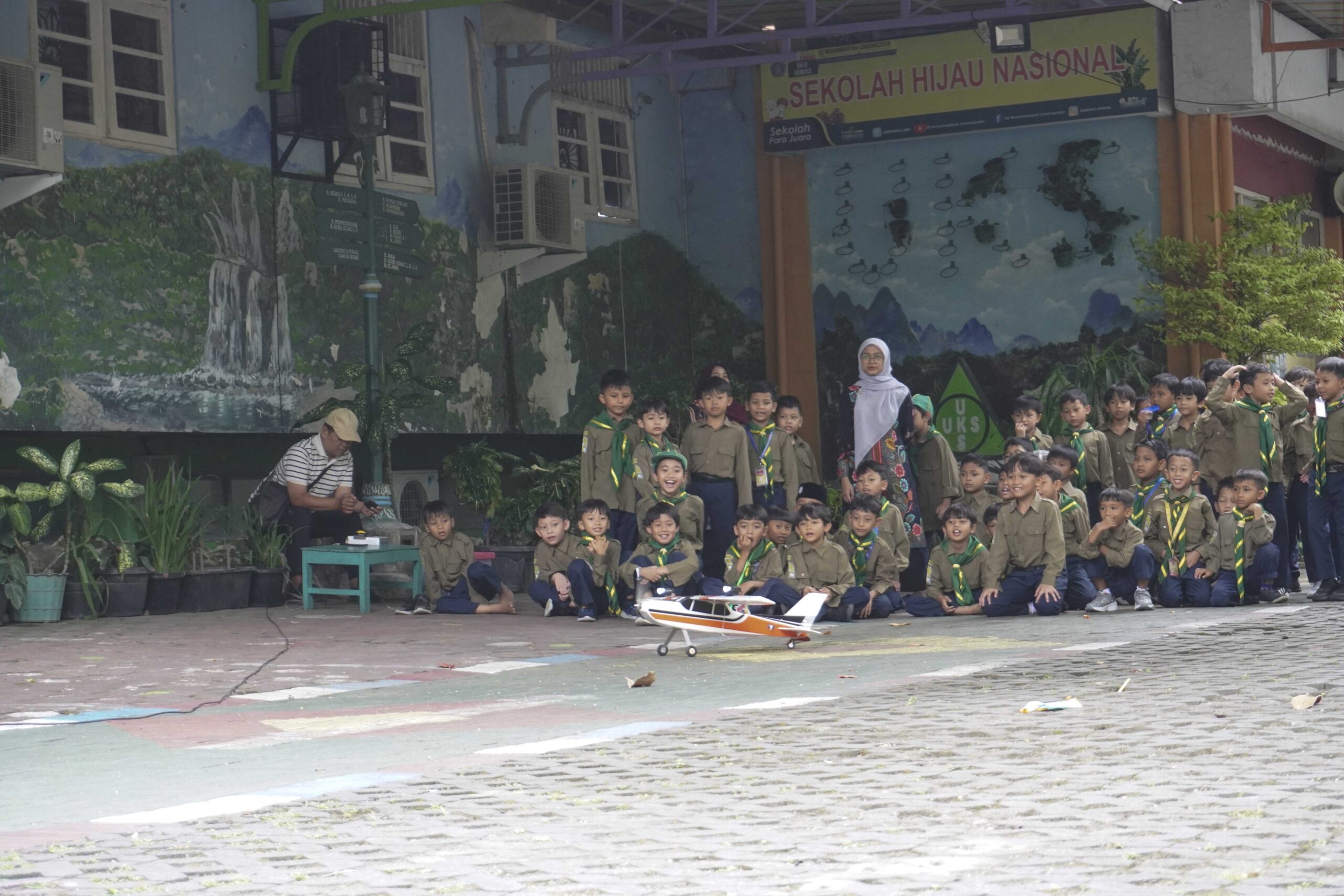 Pada hari pertama, siswa-siswi diajak untuk mengikuti kegiatan English Fun Day dan menyaksikan Demo Pesawat Aeromodelling. English Fun Day menjadi momen seru sekaligus edukatif bagi seluruh siswa untuk belajar bahasa Inggris secara interaktif. Kegiatan ini terbagi di dua lokasi, yakni Aula KH. Ahmad Dahlan untuk siswa kelas 1 hingga 3, serta Mushola AR. Fachruddin untuk siswa kelas 4 dan 5.