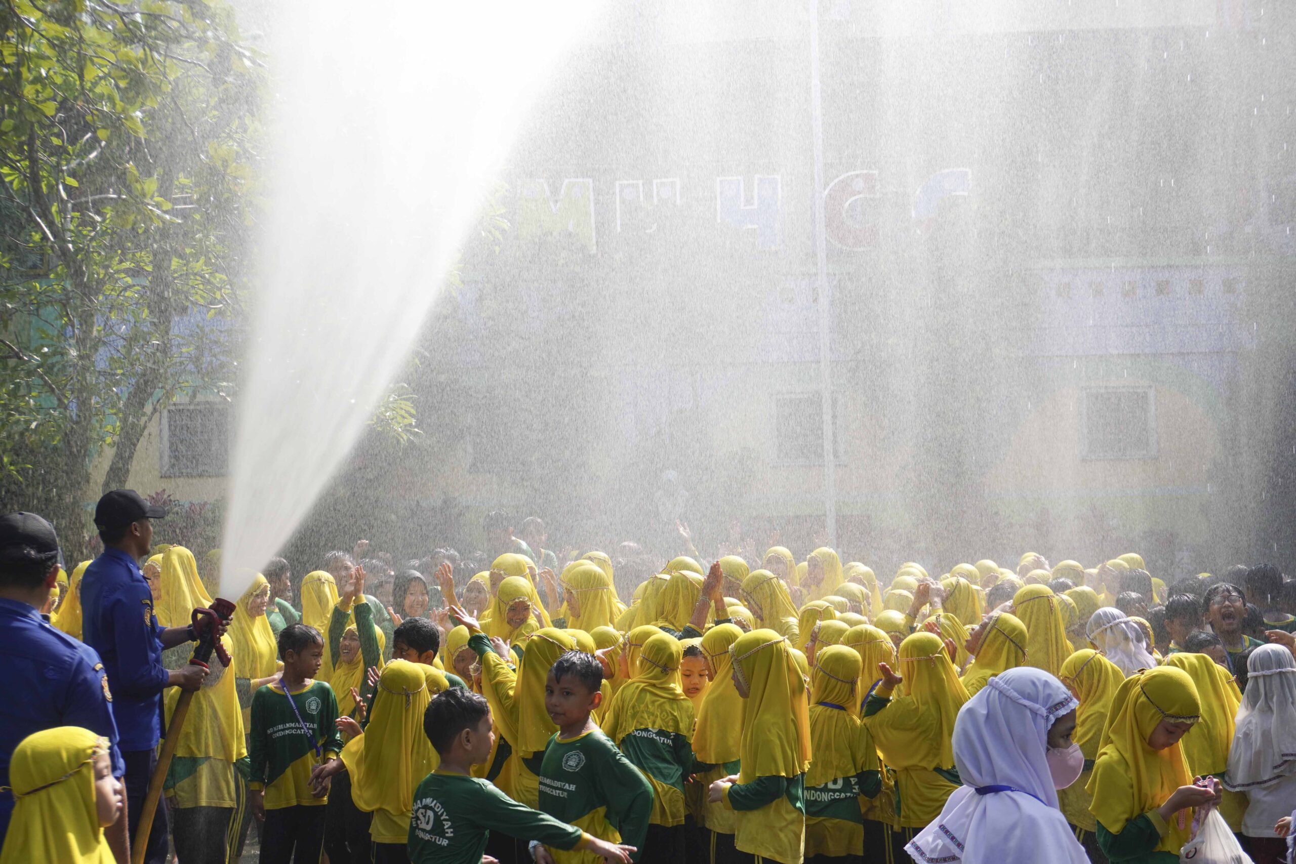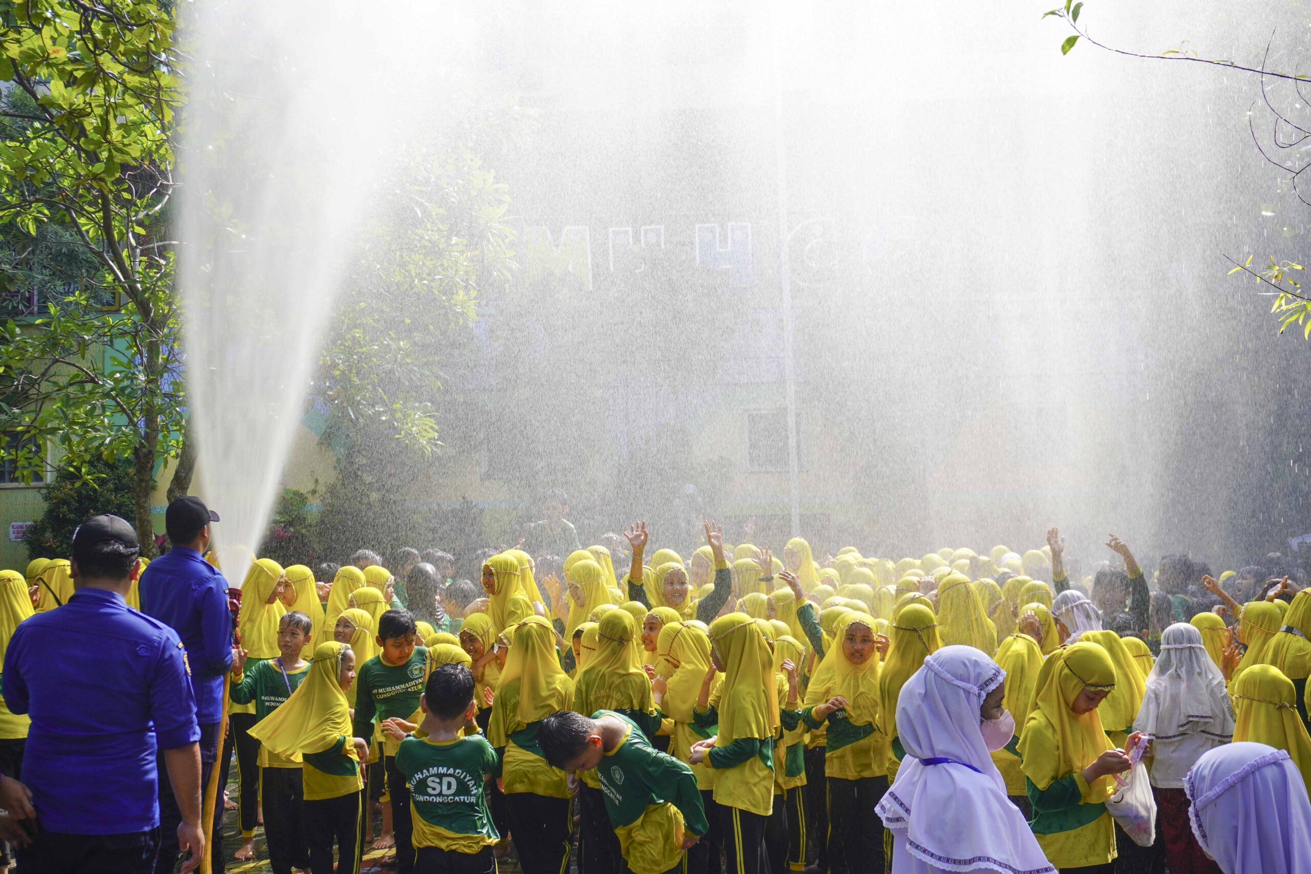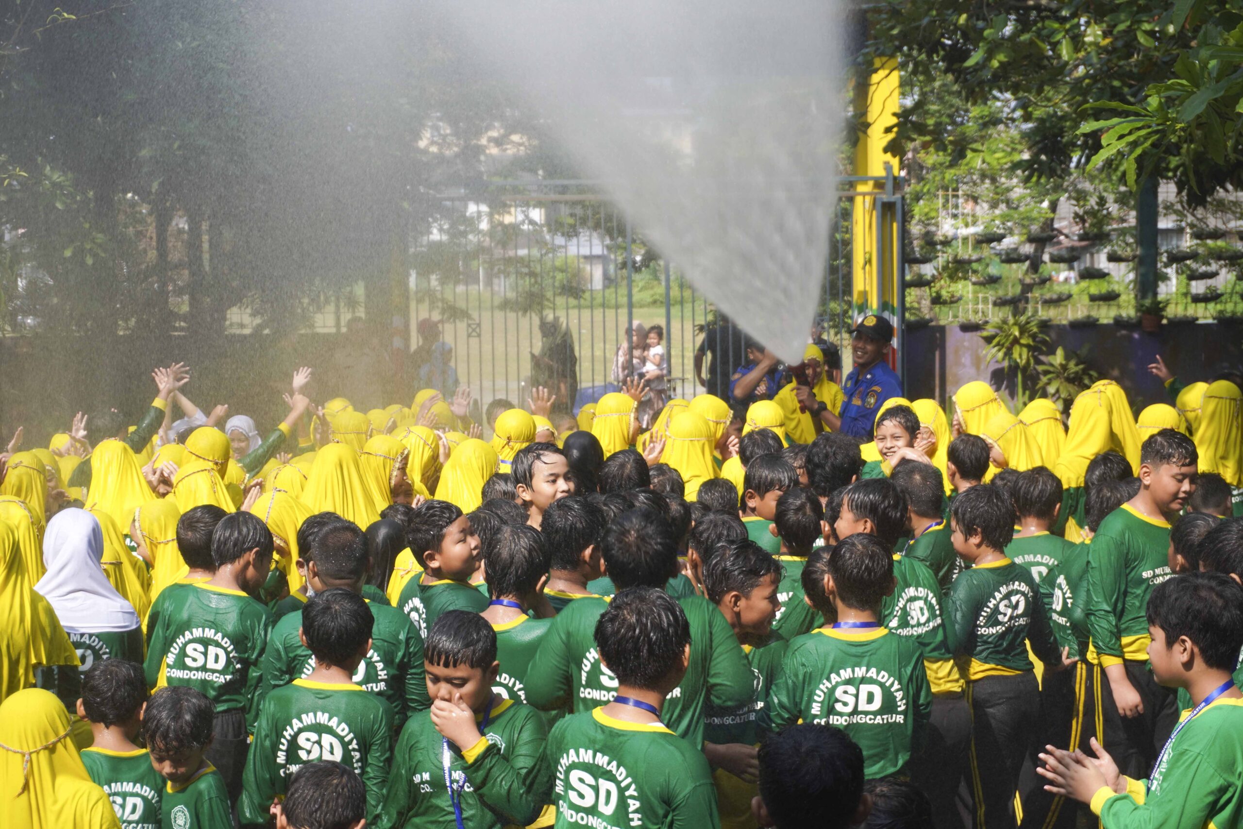 Sebagai penutup kegiatan, Tim Damkar memberikan kejutan yang paling ditunggu-tunggu oleh siswa, yaitu aksi penyemprotan air ke arah para siswa. Suasana pun berubah menjadi lebih meriah dan penuh keceriaan. Sorak-sorai siswa yang bermain air menjadi penanda betapa serunya kegiatan hari itu.