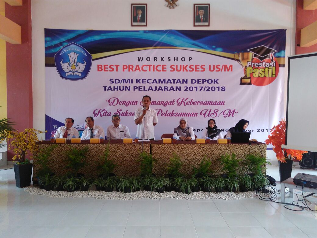 Workshop ini merupakan sebuah kegiatan berbagi pengalaman dan strategi menyiapkan siswa untuk mencapai nilai yang tinggi dalam ujian. Pembicara dalam kegiatan ini adalah sekolah yang mendapatkan nilai tertinggi di Kecamatan Depok pada saat ujian tahun lalu (TA. 2016/2017). Sekolah tersebut menyampaikan kiat-kiat praktis untuk mempersiapkan ujian sekolah tingkat SD.